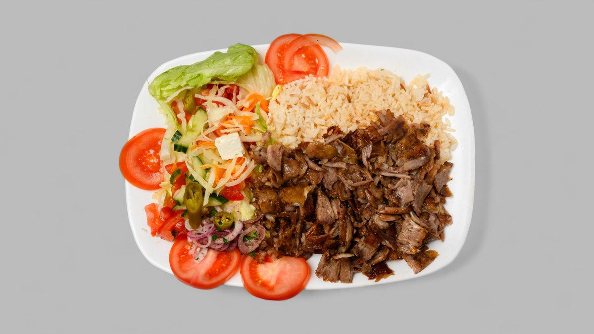 mit Reis, Dönerfleisch deiner Wahl und Salat