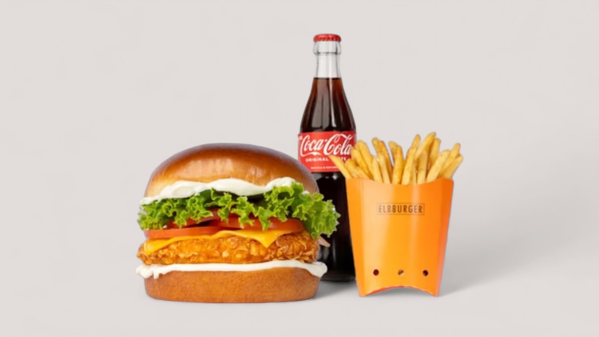 1x Elb Burger 1x Beilage nach Wahl 1x Soße nach Wahl 1x alkoholfreies Getränk 0,33 l nach Wahl