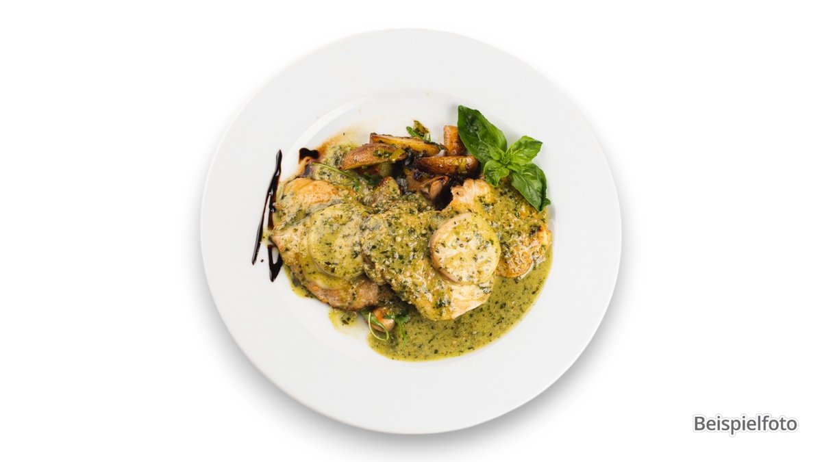 with juicy minced beef steak, mozzarella, pesto sauce and rocket