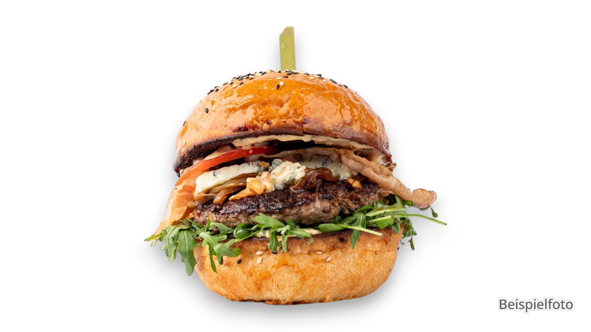 with juicy minced beef steak, barbecue sauce, bacon and Chester cheese