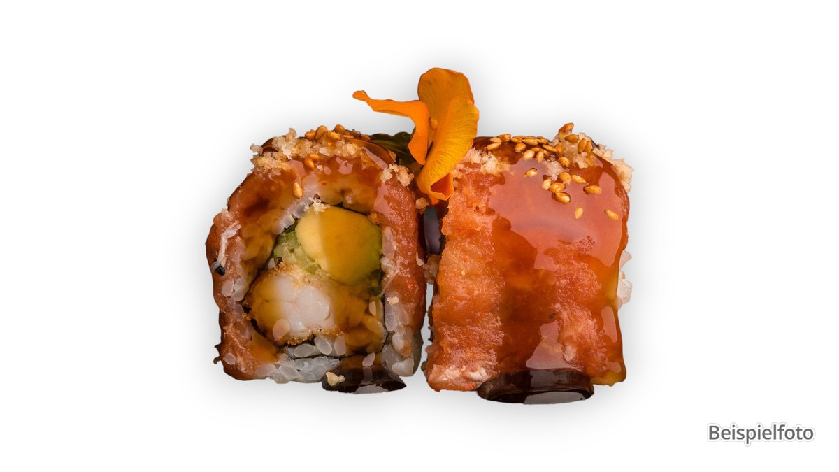 with avocado, cucumbers, sesame, vegan cream cheese and mango