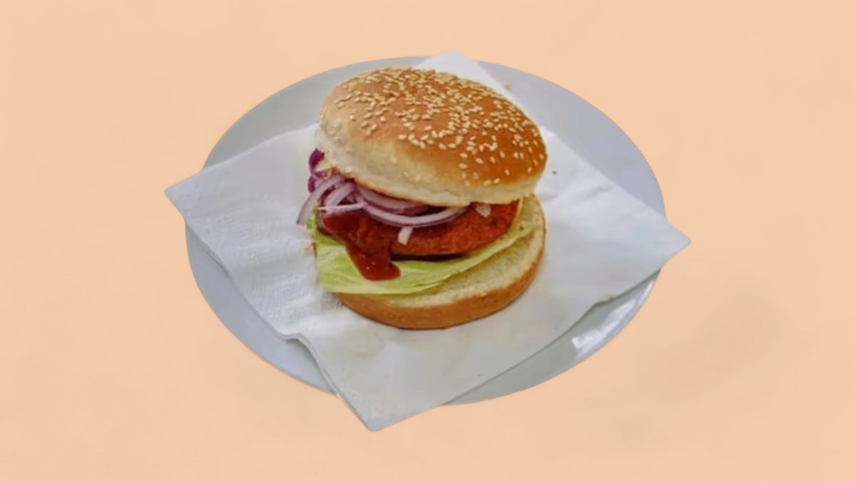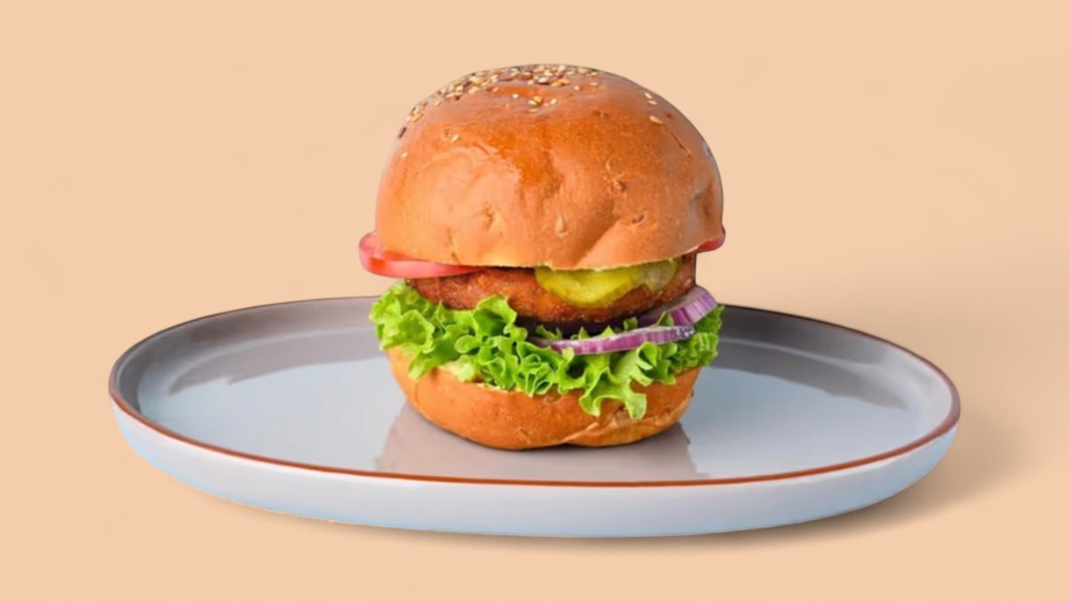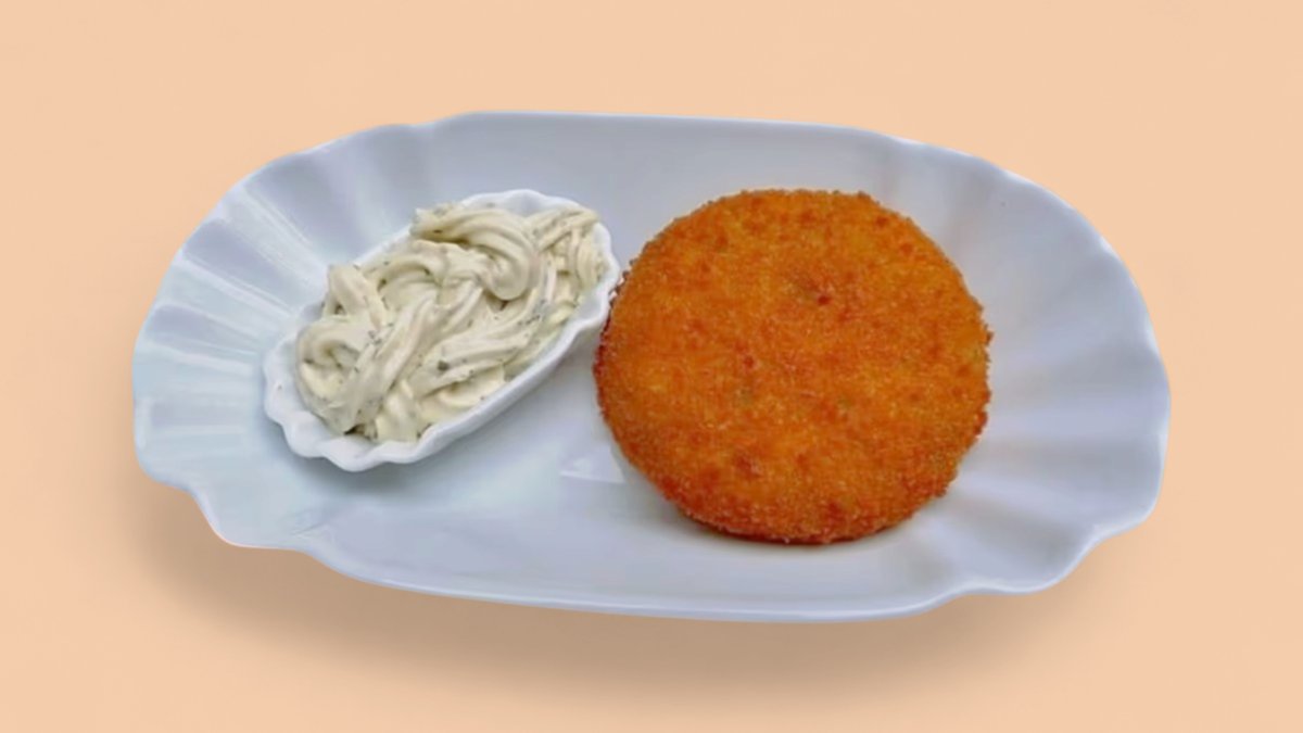 Fischfrikadelle im Brötchen mit Salat und Soße