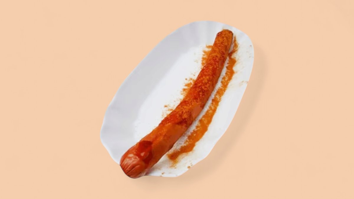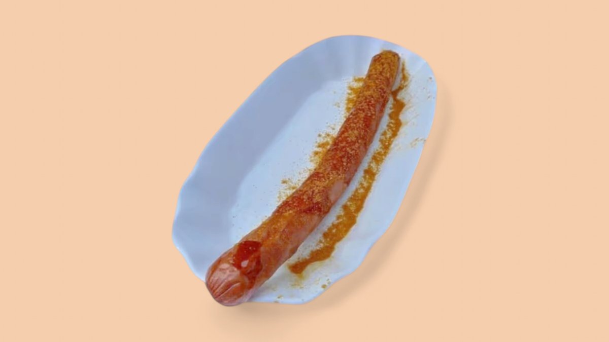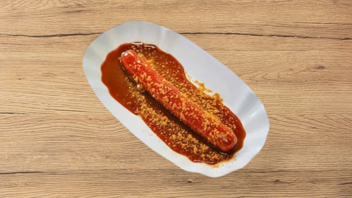 große Portion Currywurst vom Schwein mit würziger Currysoße