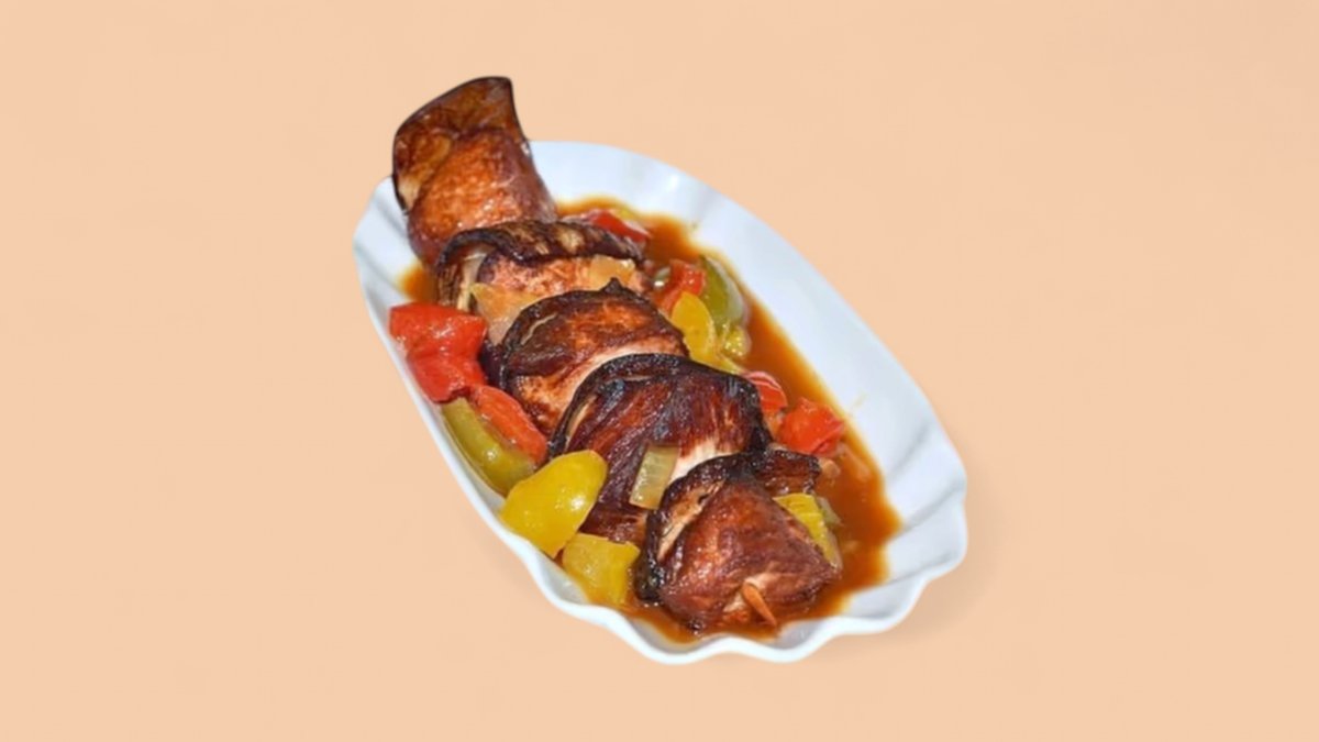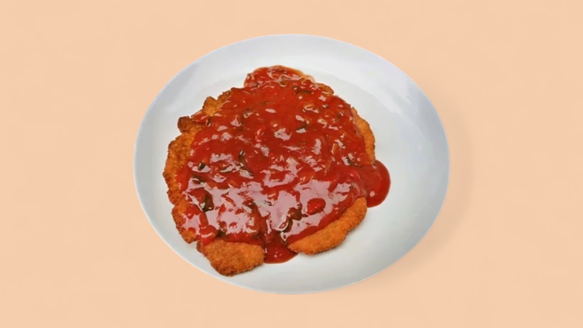 paniertes Schweineschnitzel mit Paprika und reicher Soße