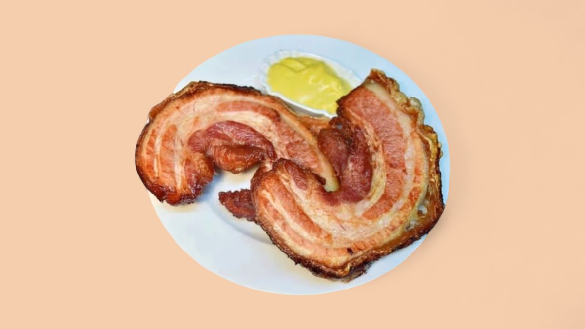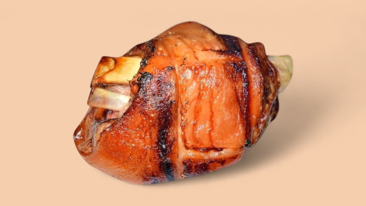 knuspriger Bauchfleisch-Spießbraten vom Schwein mit Senf