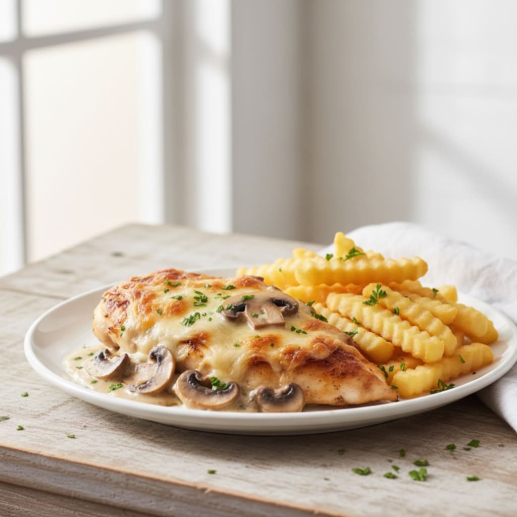 mit Zwiebeln, frischen Champignons, feingehaktem Knoblauch und Chorizo In Sahnesoße