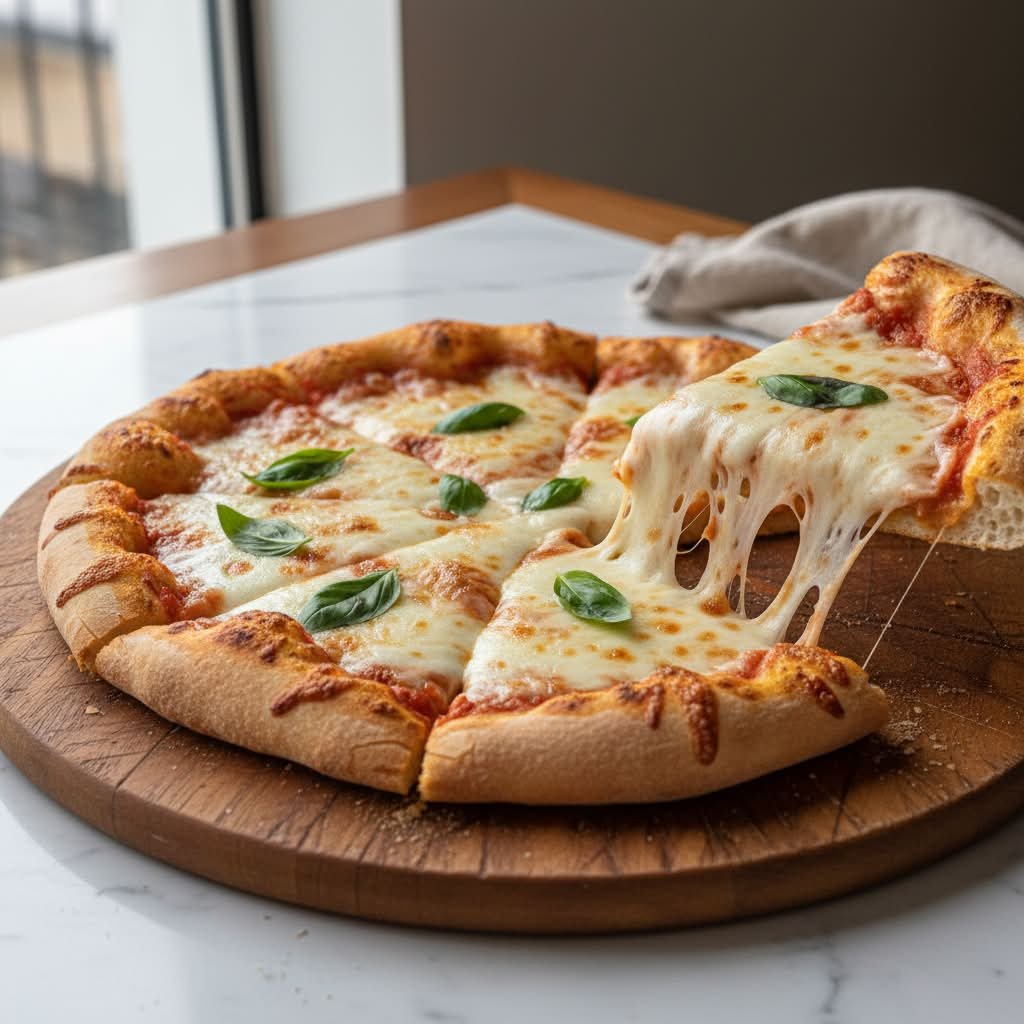 mit einer extra-Portion zartschmelzendem Mozzarella und Tomatensoße