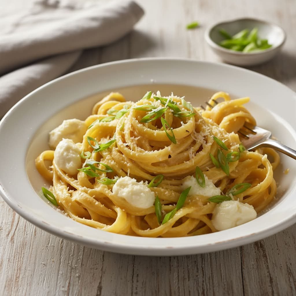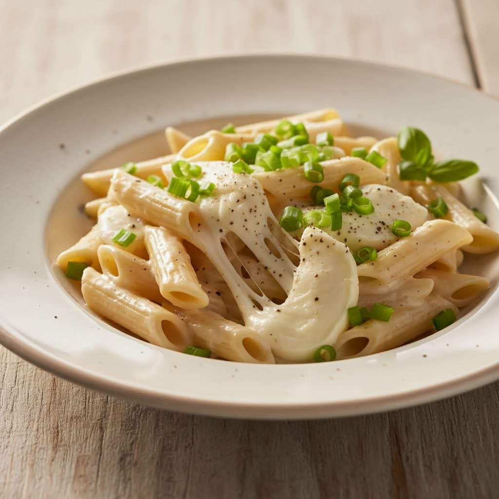 mit Mozzarella und Frühlingszwiebeln in Käse-Sahnesoße