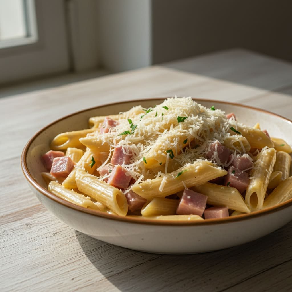 mit saftigem Hinterschinken (mit Würzlake) und italienischem Hartkäse in einer cremigen Käse-Sahnesoße