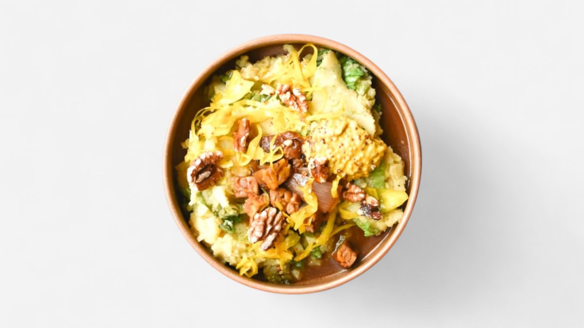 mit Schalotten Chutney, Tempeh, Walnuss, Senf und Golden Kraut