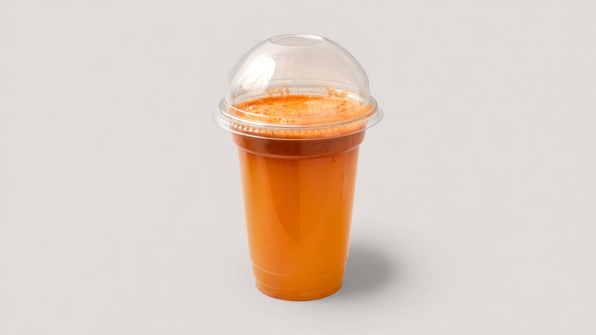 Carbonated soft drink with orange flavour, sugar, contains natural flavourings
