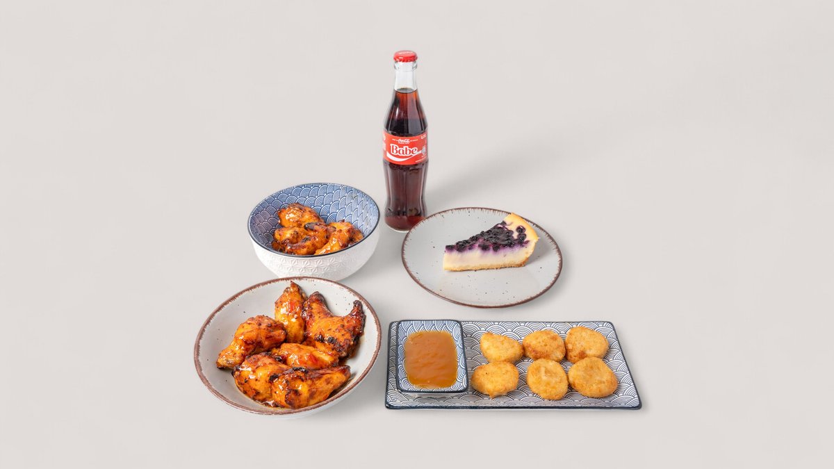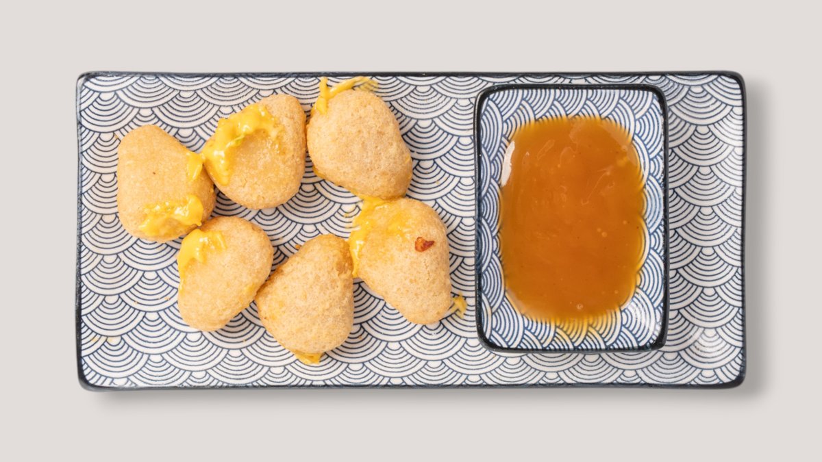 1x mozzarella sticks 1x sweet and sour sauce 1x blueberry cheesecake muffin