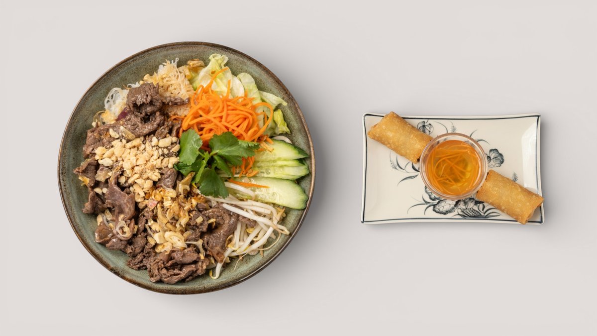 mit Bun Bo Nam Bo oder Bun Dau und 2 StĂĽck Sommerrollen oder 2 StĂĽck FrĂĽhlingsrollen