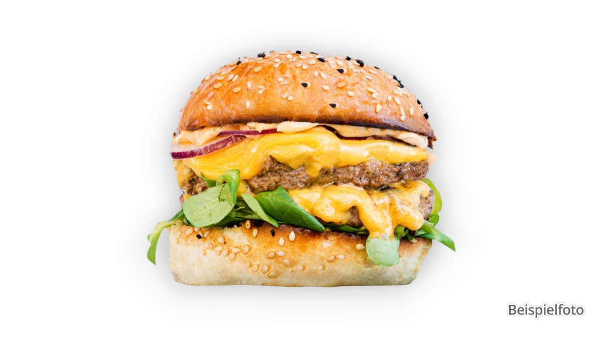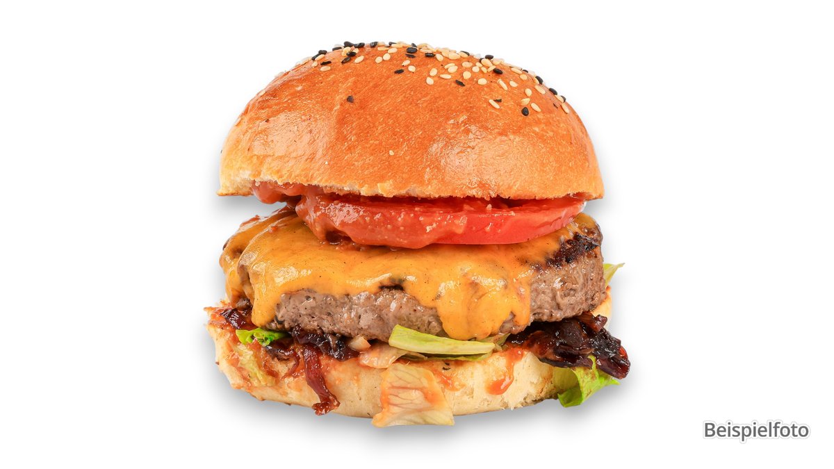 mit doppel Smash-Patty vom Rind, doppelt Cheddar, Onion Jam und Burgersoße