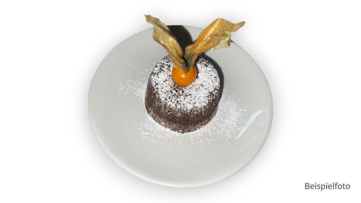 warm dark chocolate soufflé with liquid chocolate kernels Note that there are cocoa nibs in the dish which may include traces of various nuts