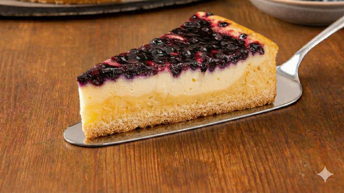 cremiger Pudding auf knusprigem Mürbeteigboden mit Blaubeeren
