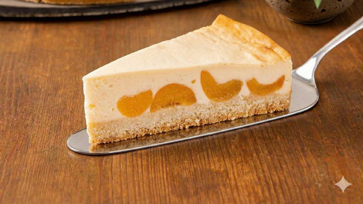 saftige Aprikosen und zart gebräunte Käsemasse auf Mürbeteigboden