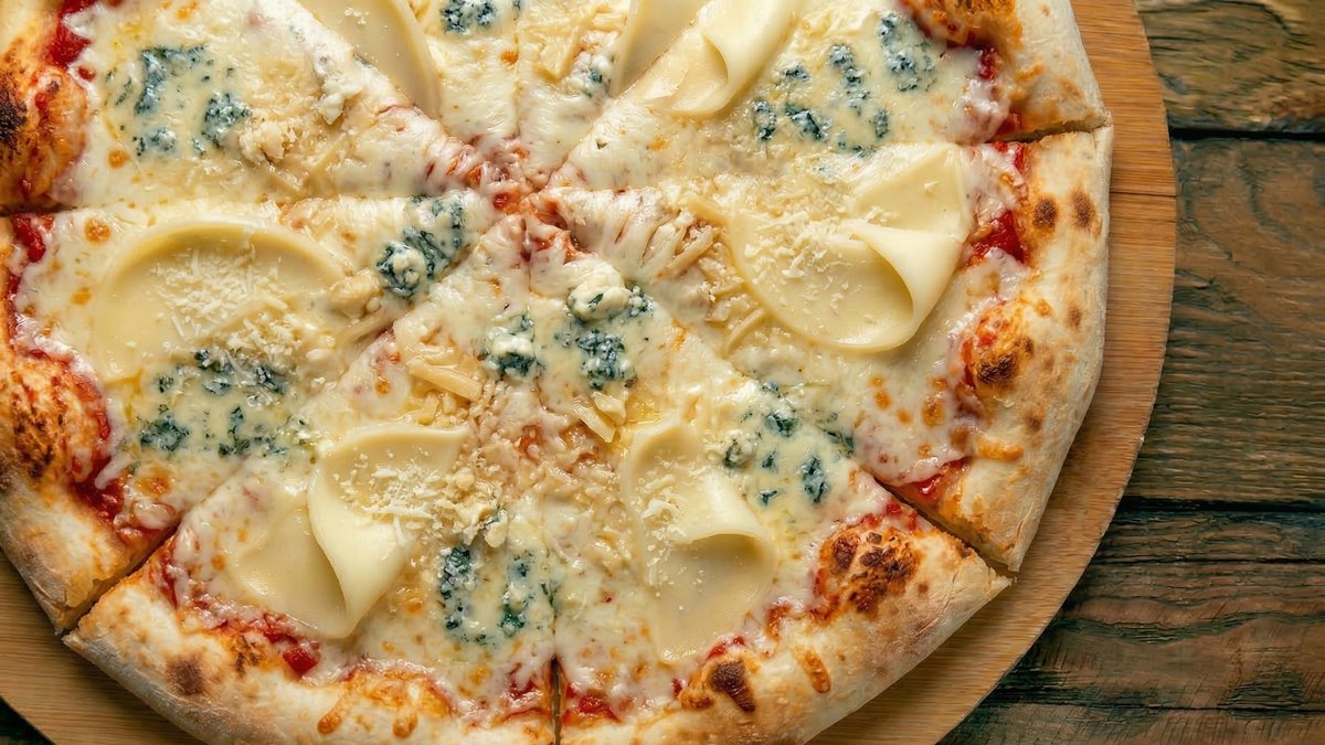 mit Mozzarella, Gorgonzola, Parmigiano und Gouda