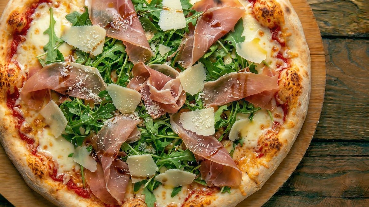 mit Parmaschinken, Rucola, Parmesan und Mozzarella