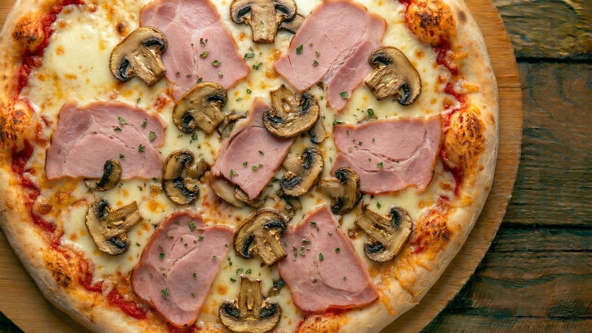 mit Schinken vom Schwein, frischen Champignons und Kirschtomaten