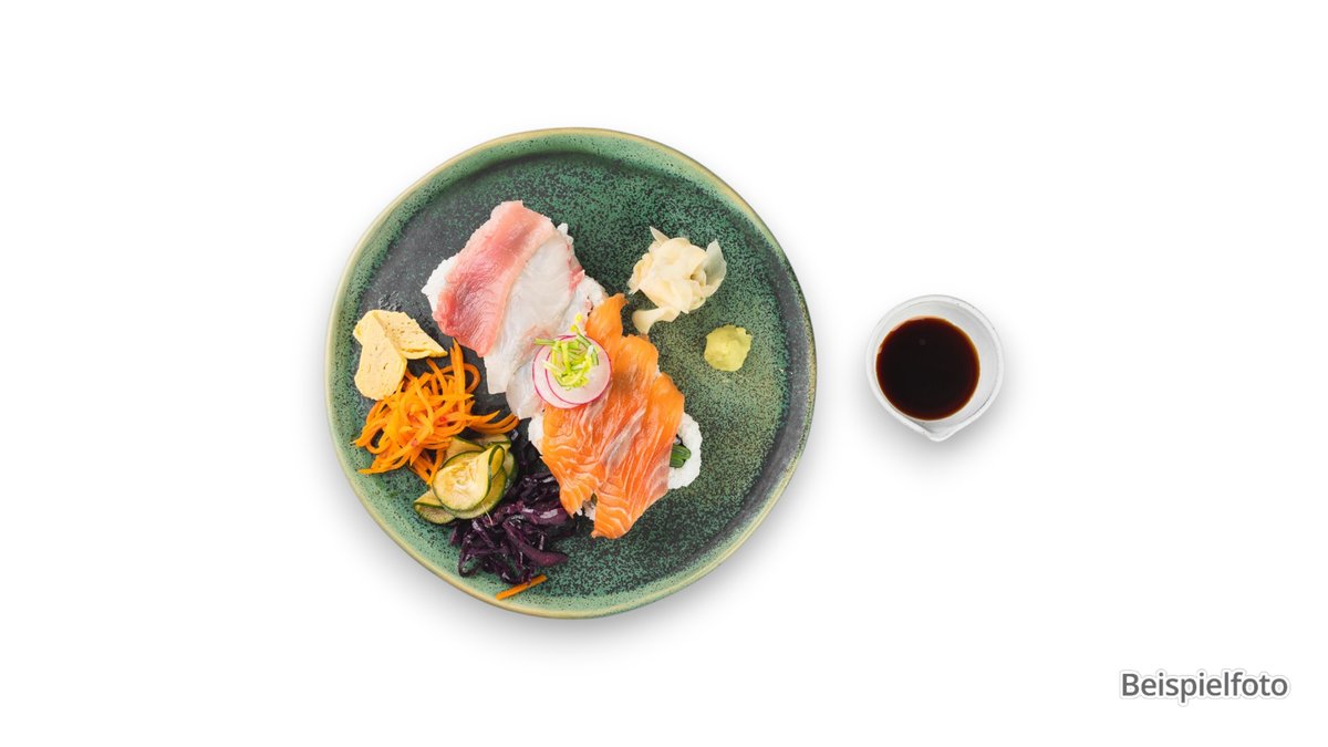 2x Lachs Sashimi 2x Thunfisch Sashimi 1x Schnapper Nigiri 1x gegrillter Aal Nigiri 6x Lachs Maki 1x Thunfisch Nigiri 1x Lachs Nigiri 1x Garnele Nigiri