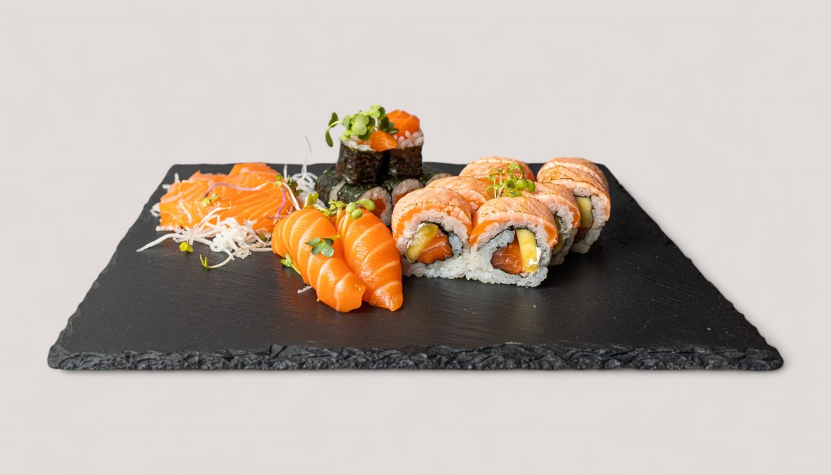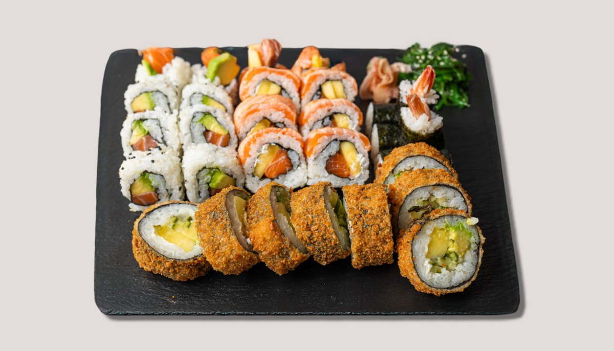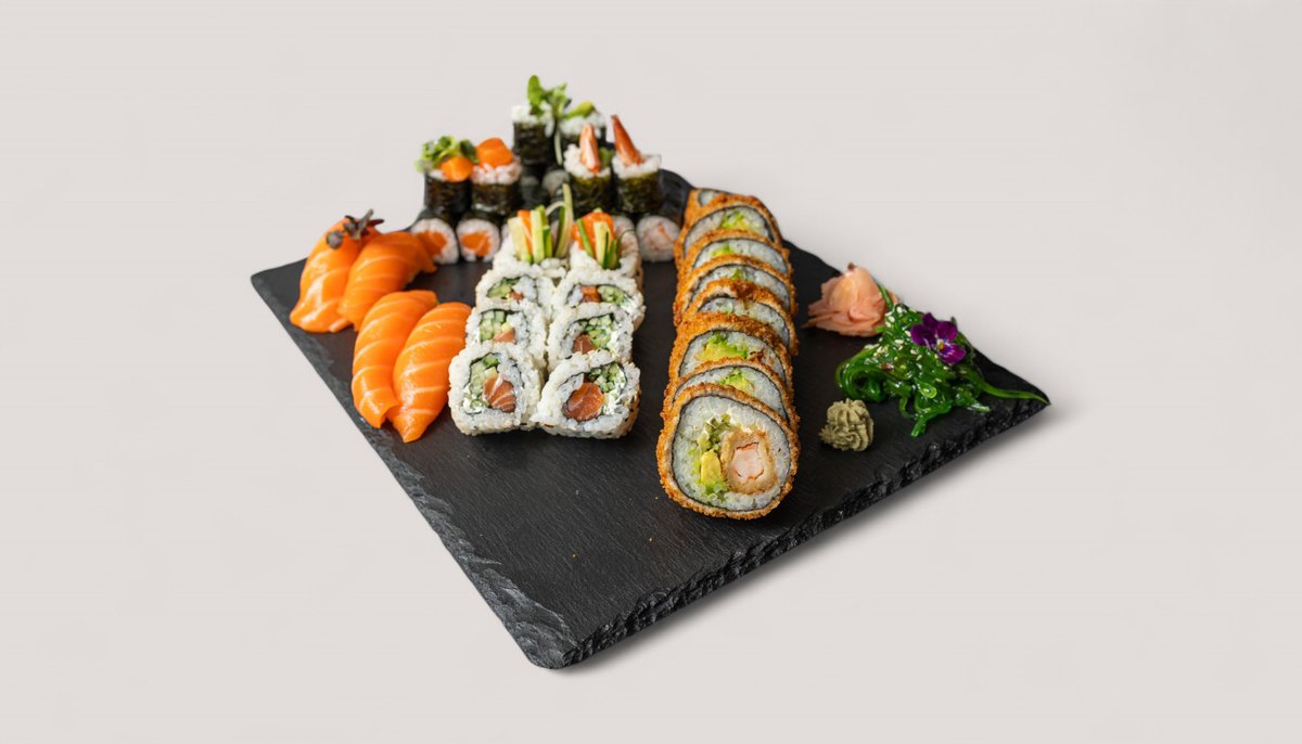 8x Tempura Crunchy Roll 8x Silky Ocean Roll 4x Lachs Nigiri 8x Ebi Inside Out 8x Lachs Maki 8x Avocado Maki