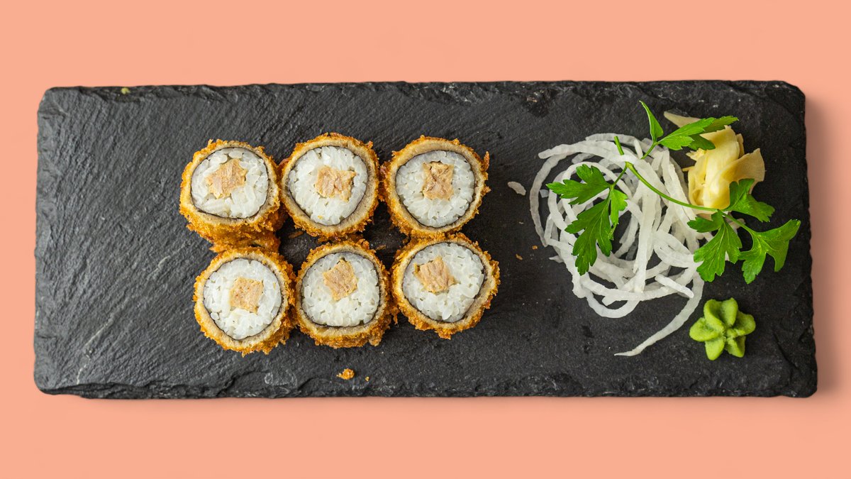jede Portion enthält 6 Stück und wird mit Unagi-Cocktailsoße serviert