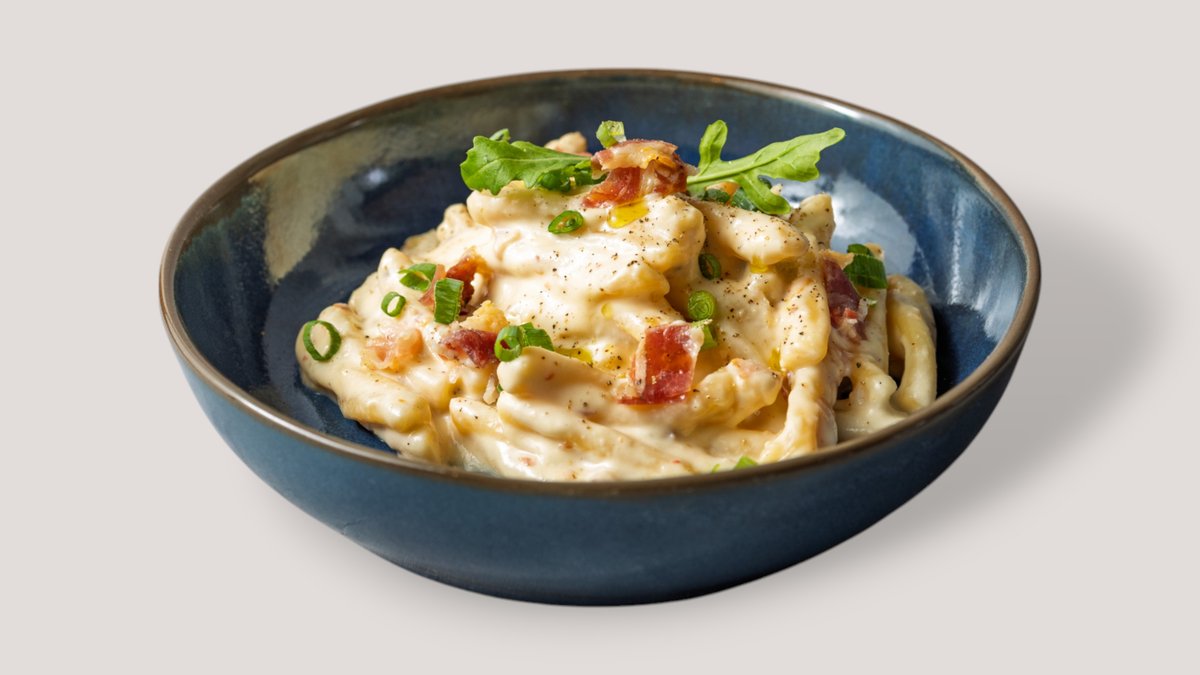 mit Pancetta, Ei, Grana Padano und Pecorino