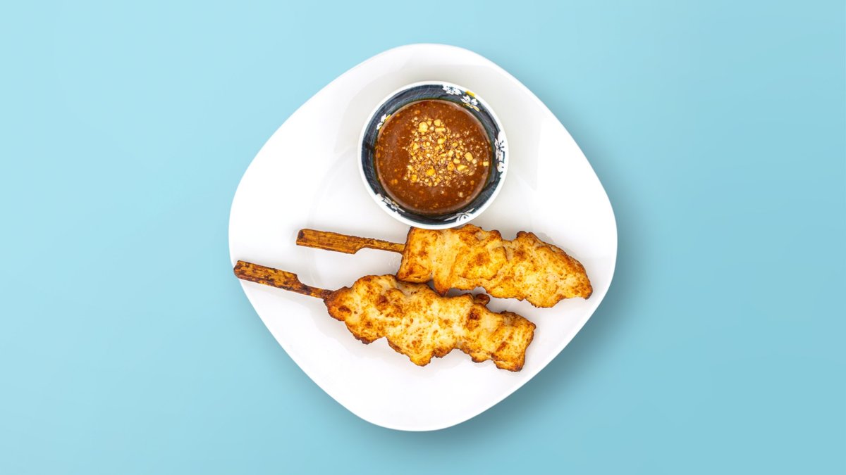 2 pieces juicy chicken skewers with homemade peanut hoisin sauce