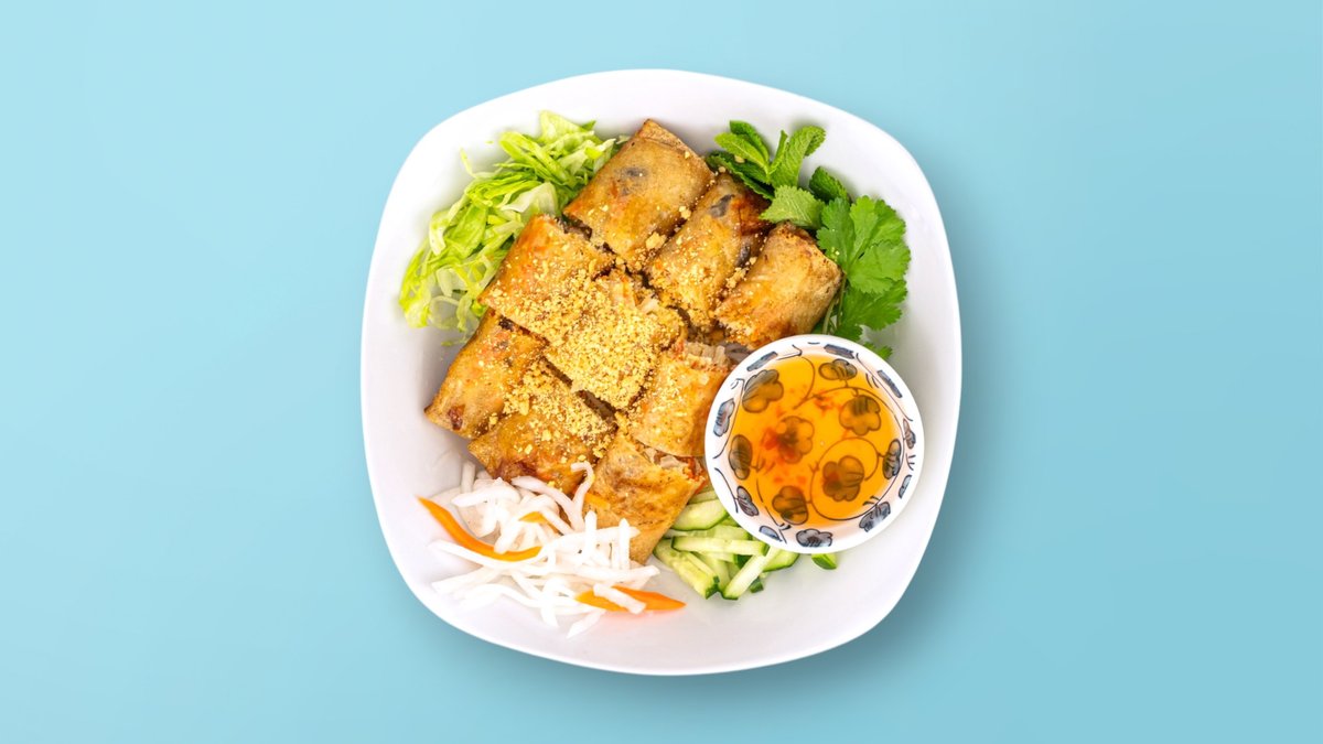Rice Noodle Salad with Chicken Spring Rolls