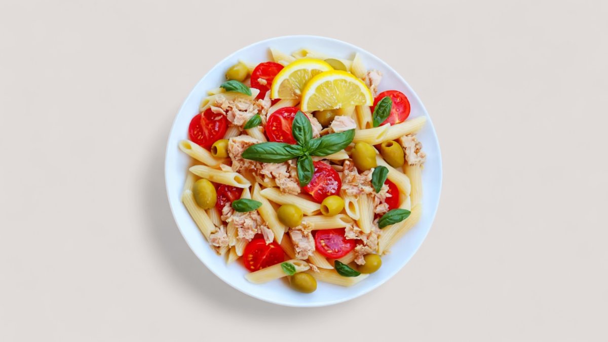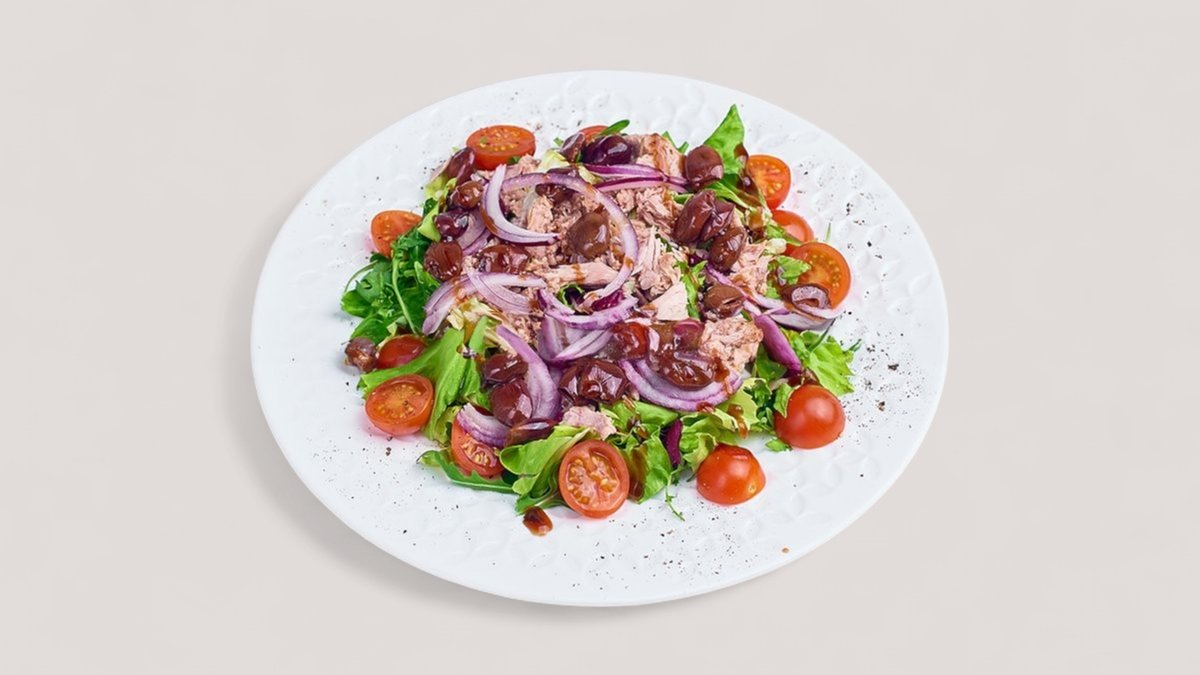 scharf mit Thunfisch, Oliven, Knoblauch und Zwiebeln