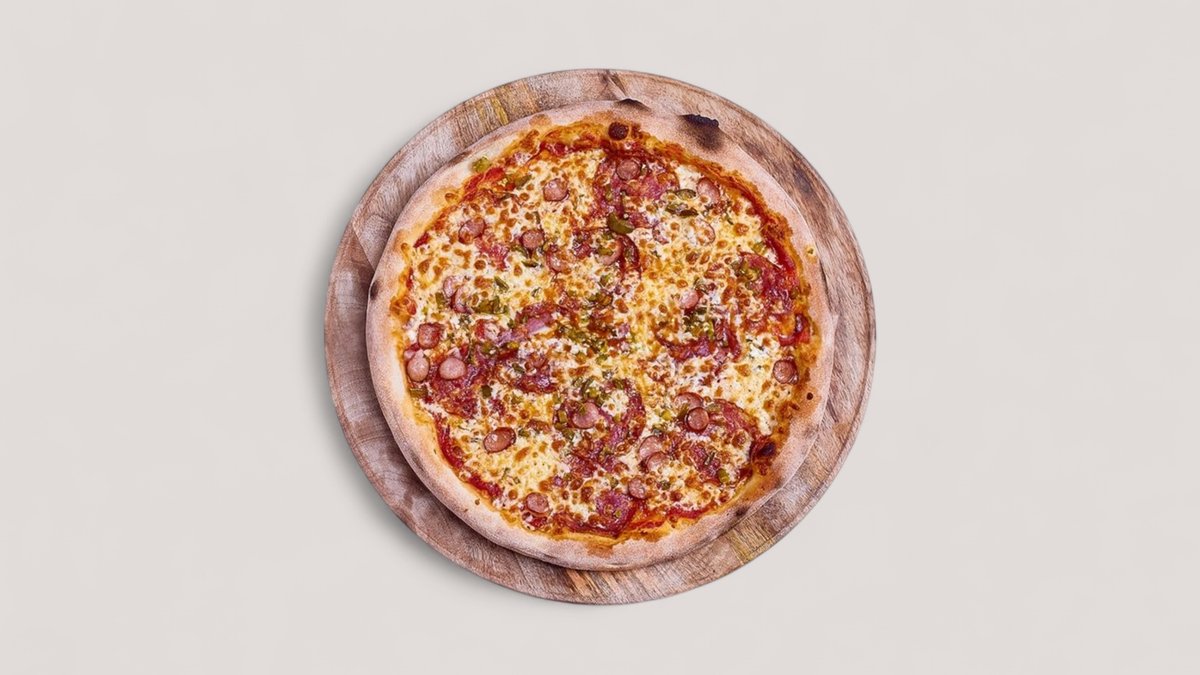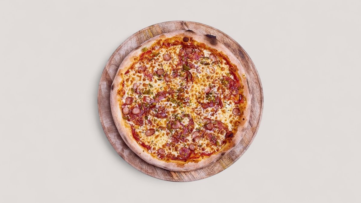alle Pizzen sind ca. Ø 30 cm groß und werden mit hausgemachter Tomatensoße und Fior di Latte Mozzarella zubereitet („Pizza Aglio e Olio” wird ohne Fior di Latte Mozzarella zubereitet und „Pizza Prosciutto Veneziana” wird ohne Tomatensoße zubereitet)