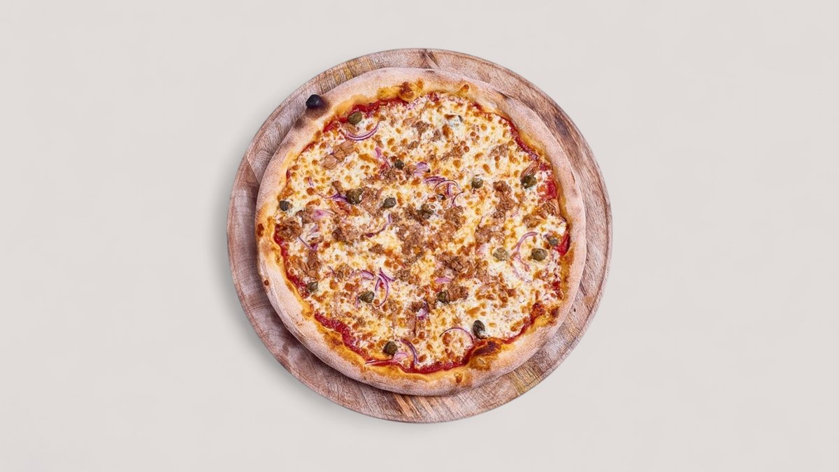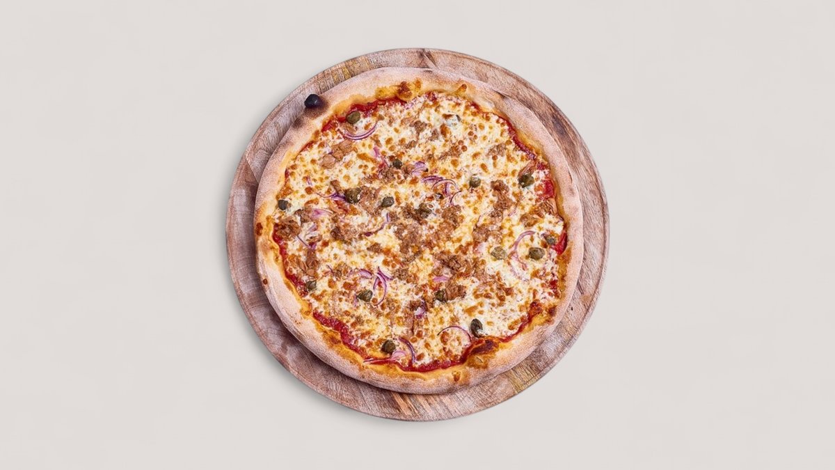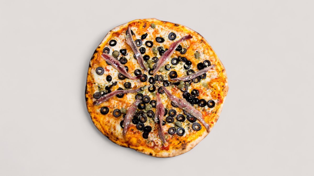 scharf mit Thunfisch, Sardellen, Zwiebeln und Oliven