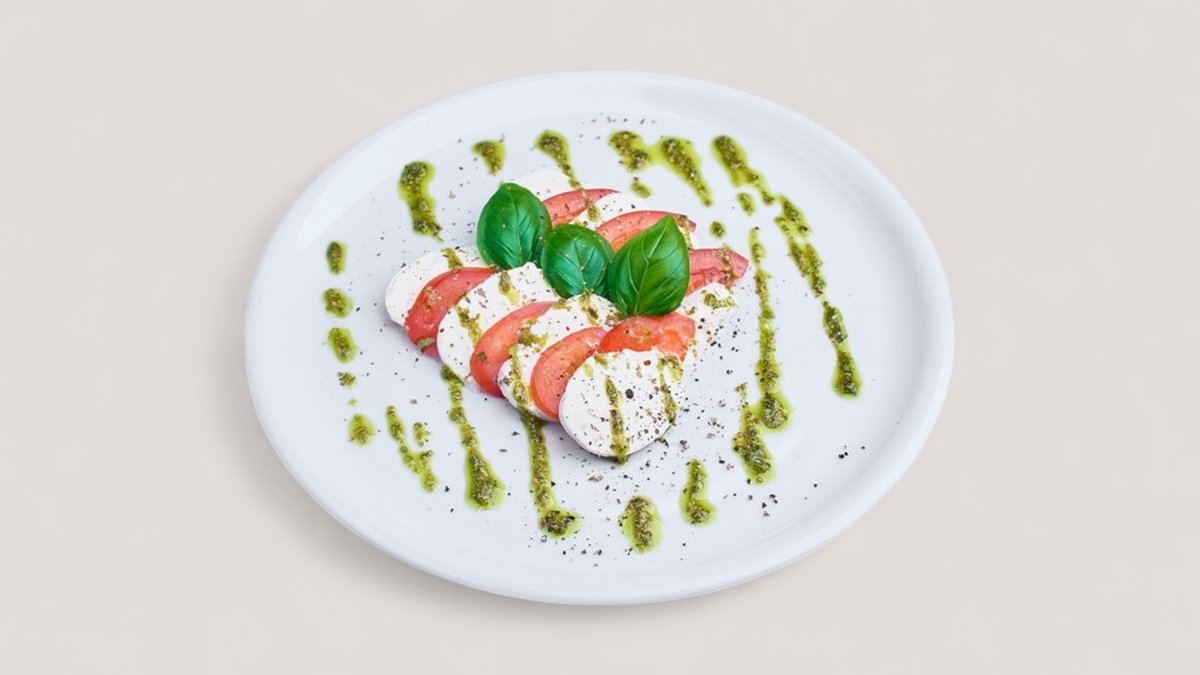 mit Tomaten, Mozzarella, Oregano und Olivenöl