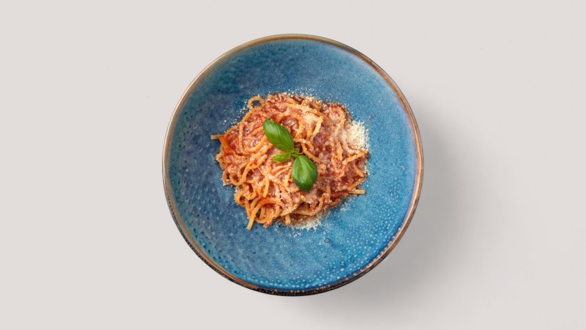 pikant mit Speck und Zwiebeln in pikanter Tomatensoße