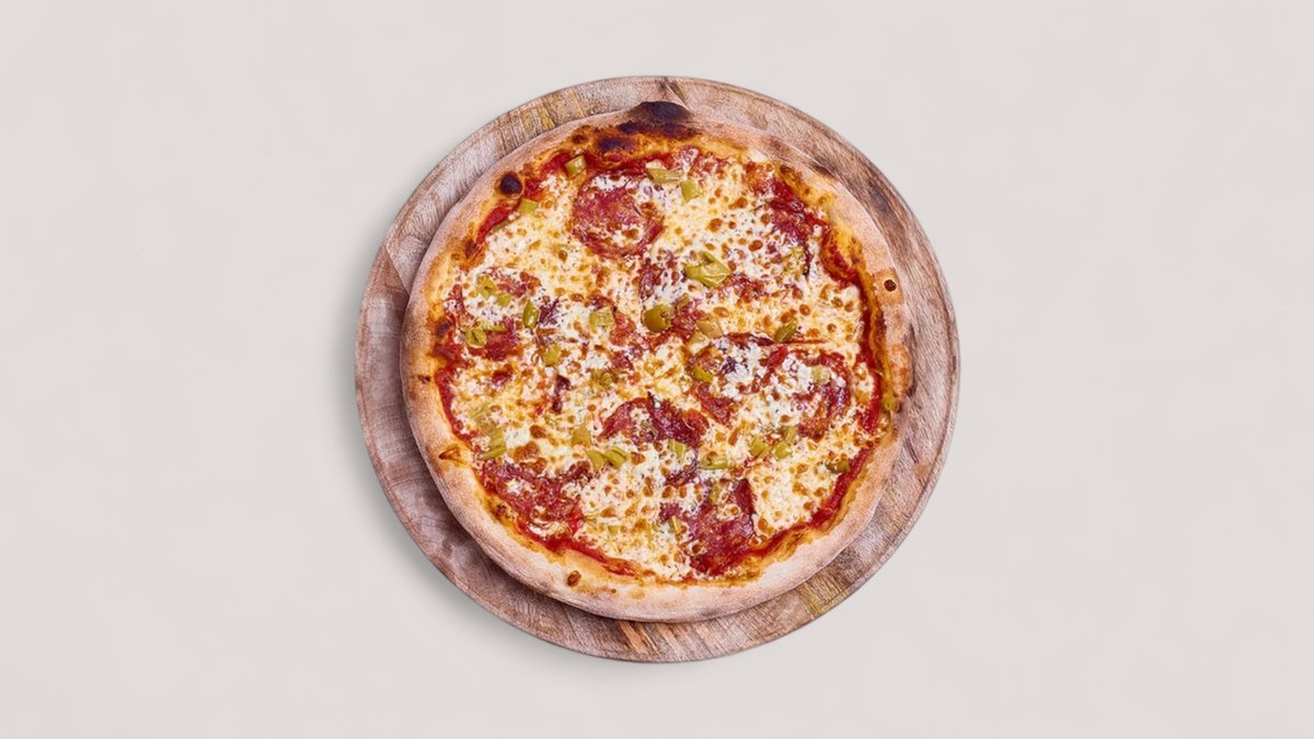 mit Peperoniwurst, Zwiebeln und Peperoni
