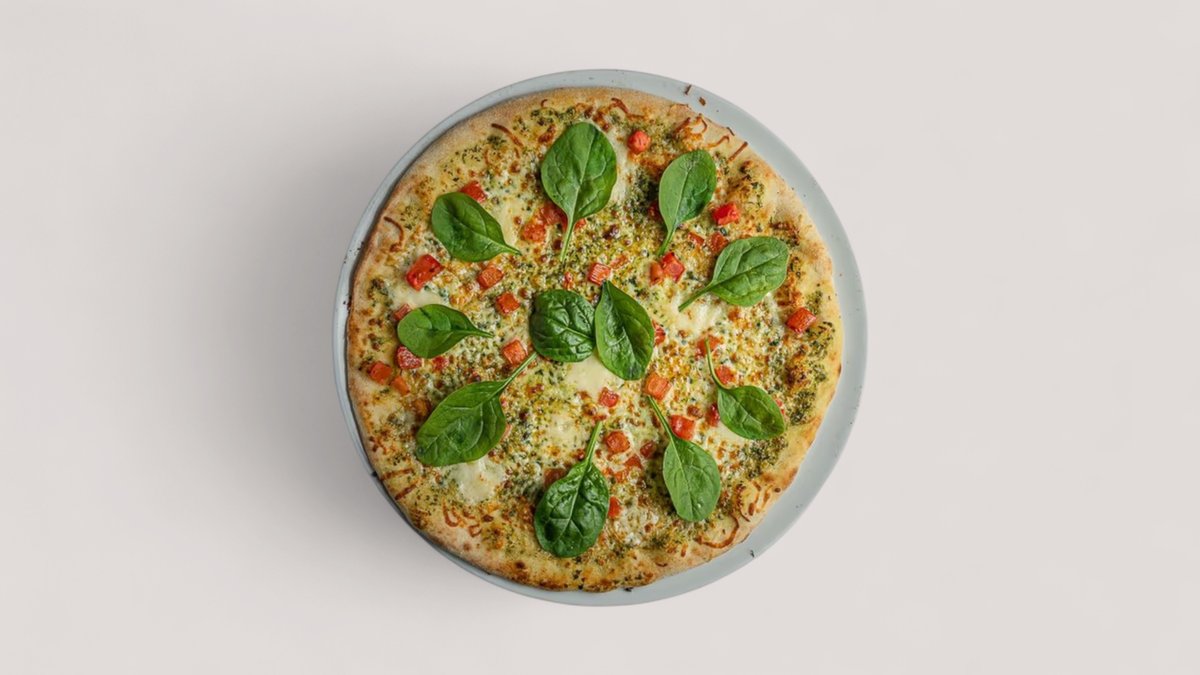 mit Spinat, Sahnecreme, Oliven, Knoblauch, Basilikum und Oregano