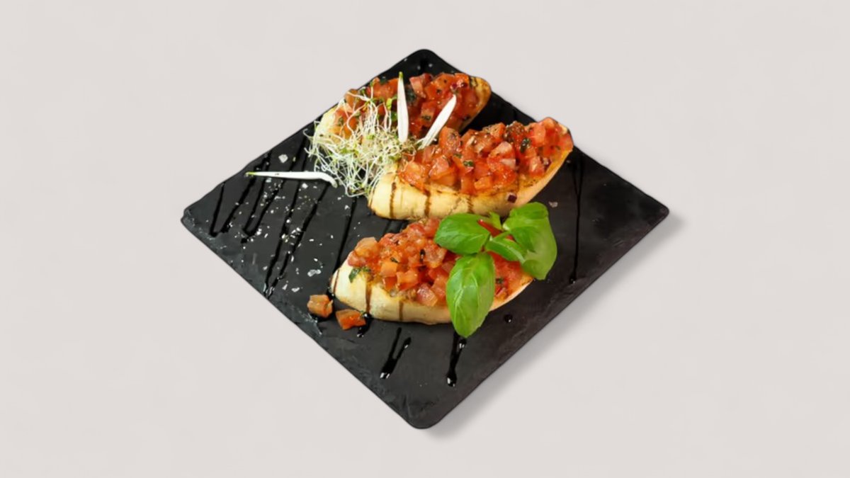 Brot mit Rucola, Tomaten, Zwiebeln, Pergamano und Knoblauch