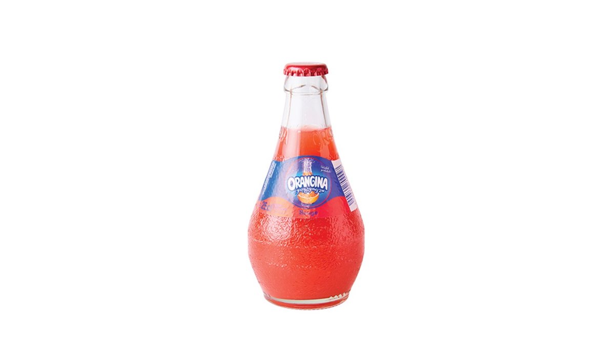 Soft drink with blood orange flavor, sugar, fruit pulp, carbonated