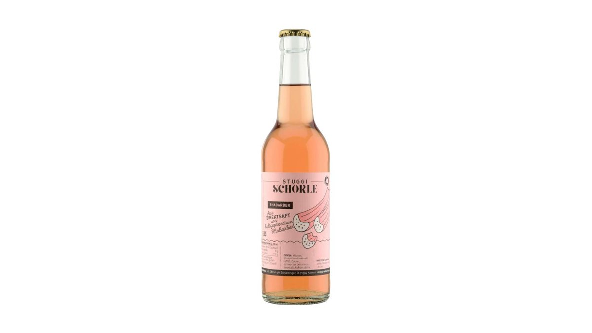 Rhubarb spritzer, a mixture of rhubarb juice and mineral water, no added sugar, carbonated