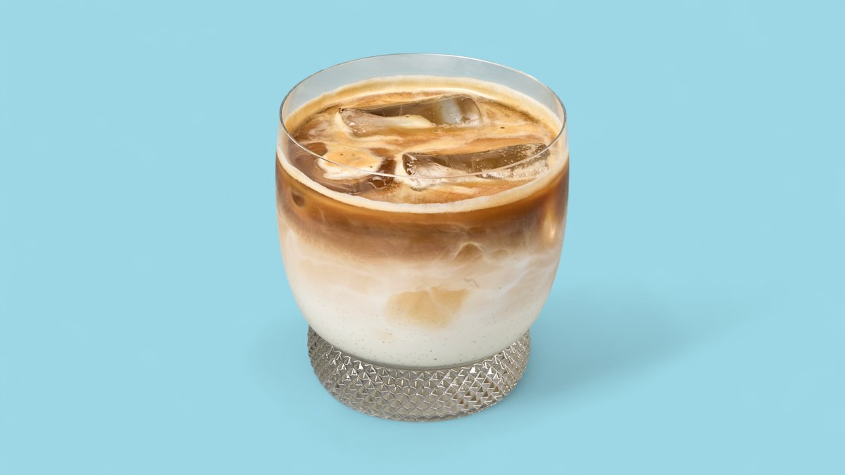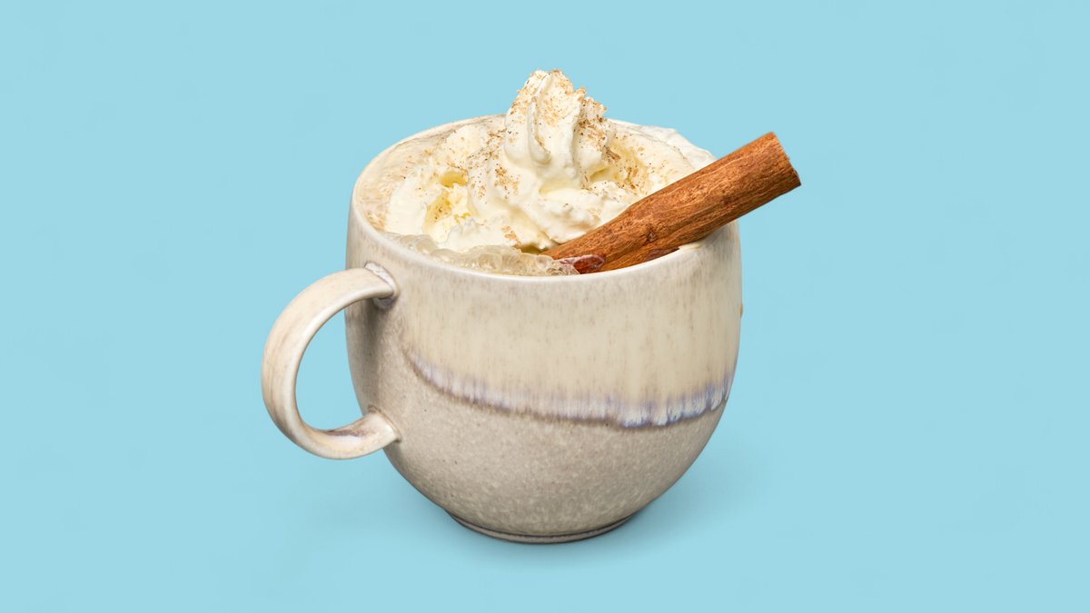 latte with white chocolate and whipped cream This dish is made with chocolate and may contain traces of various nuts.
