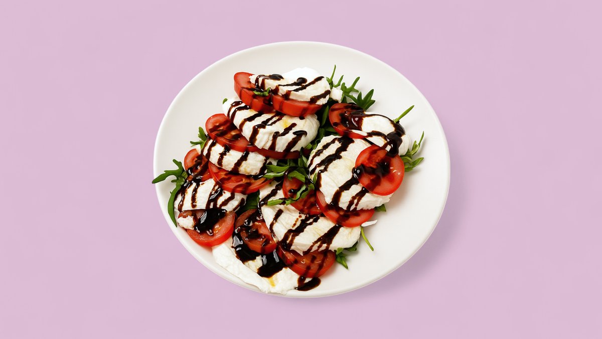 with buffalo mozzarella, rocket, tomatoes and balsamic crema