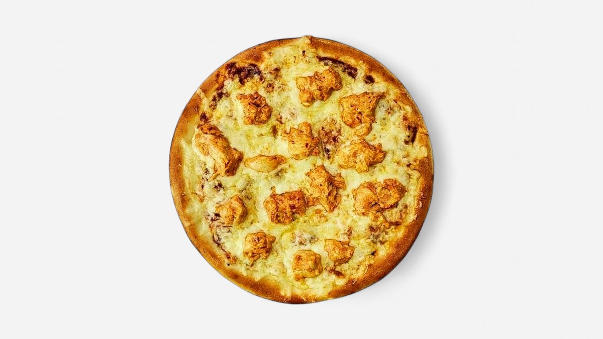 Oriental Pizza with Chicken Breast, Cheese, and hollandaise Sauce