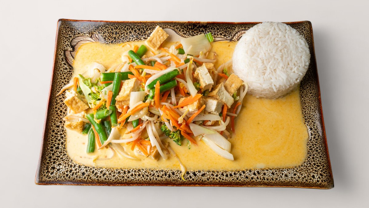 mit Kokosnussmilch, Gemüse nach Thai-Art und einer Soße deiner Wahl