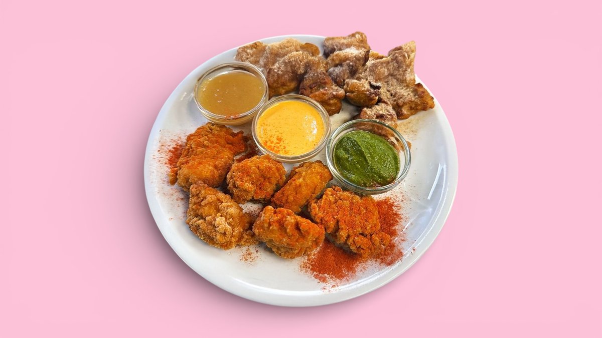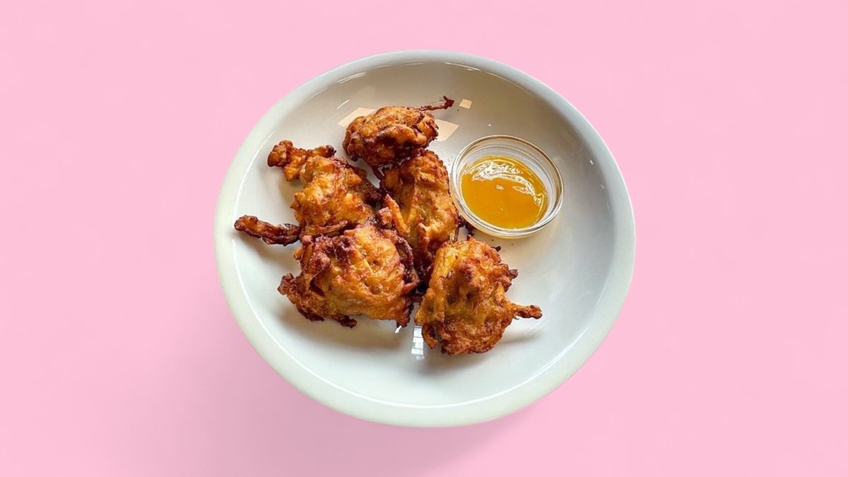3x frittierte Gemüsebällchen 3x Chicken Pakora 1x Samosa mit einem Chutney nach Wahl