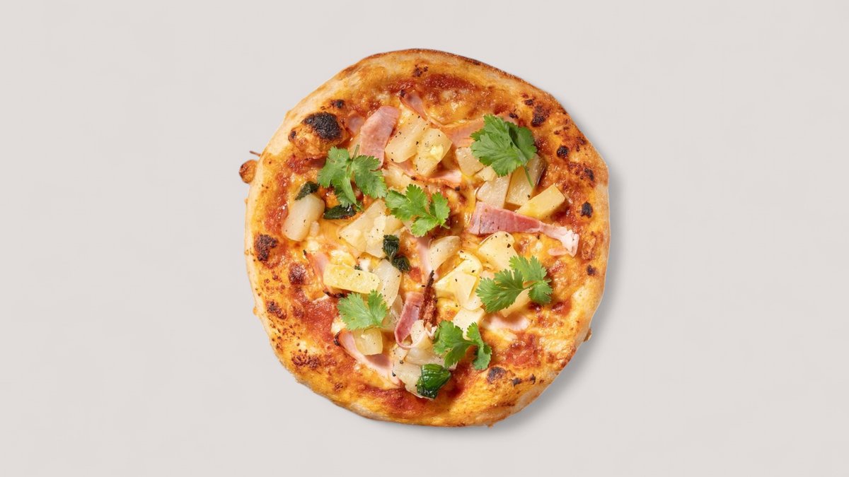 mit Tomatensoße, Käse, Kochschinken, Ingwer, Koriander, und Ananas