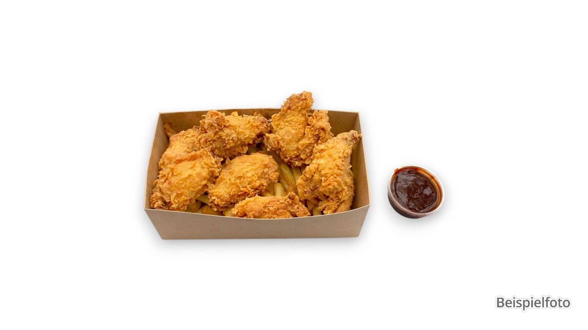 chicken breast strips, served with Mediterranean vegetables in a hot pan