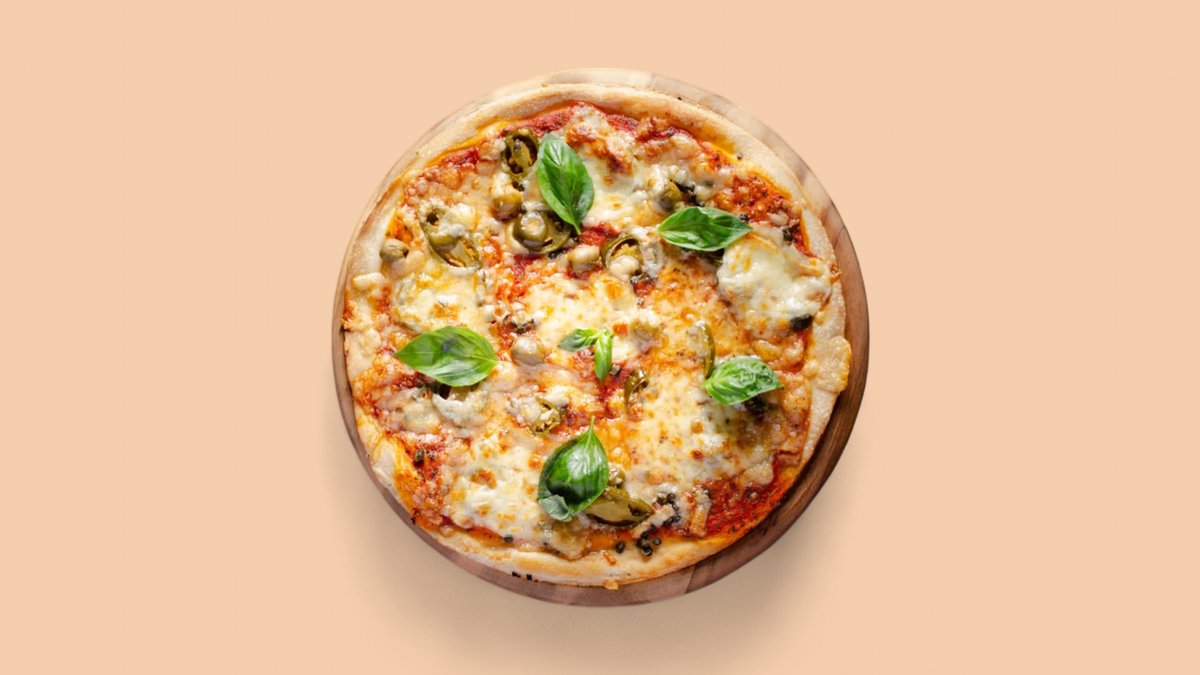 mit feurigen Jalapeños, grünen Oliven, aromatischen Kapern mildem Mozzarella, bestreut mit Basilikum