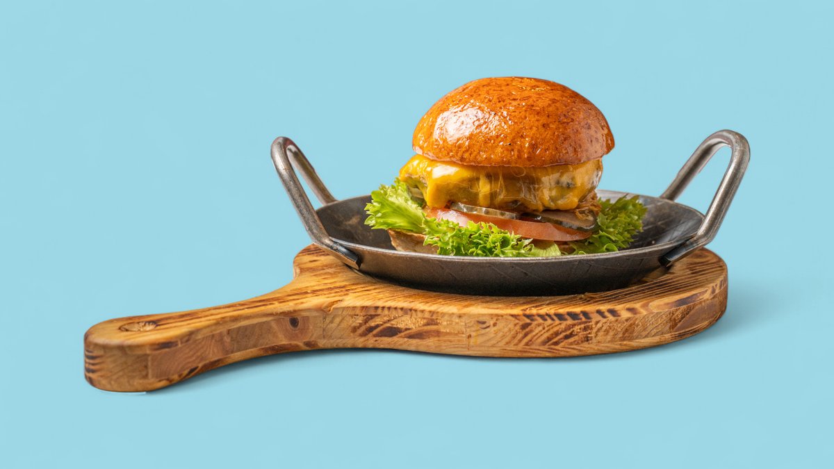 beef patty, Cheddar cheese, lettuce, tomato, pickle and onions