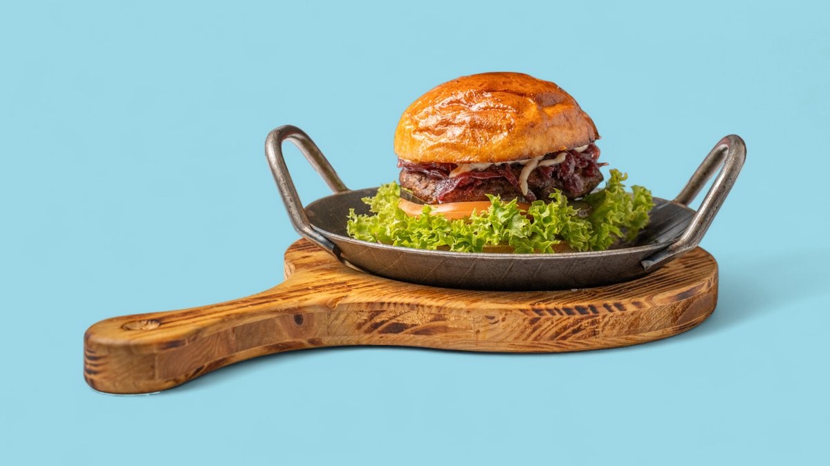 beef patty, pork bacon, lettuce, tomato, onion jam and gaucho sauce
